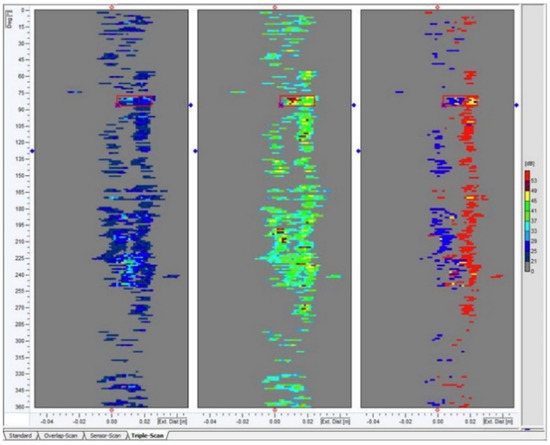 So far, the defect depth can only be classified and cannot be quantified for the defects in and at the weld. All of the defects with depths of ≥2.5 mm can be correctly classified; while most shallow ones were overestimated, especially for those in welds. The dynamic behavior of the sensor carrier potentially had an effect on the test data and the depth estimation. Furthermore, the different weld geometry led to lift-off in the tests. Therefore, the depth sizing specification might be compromised.