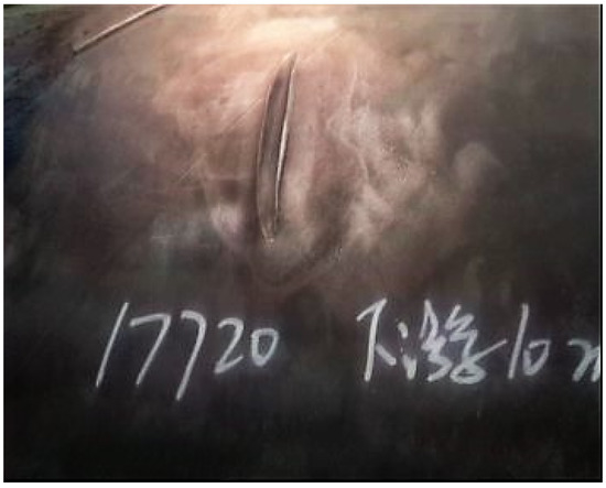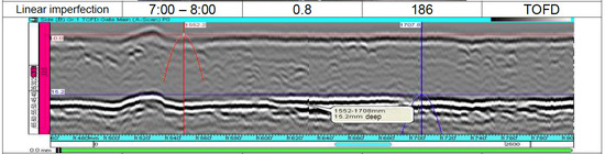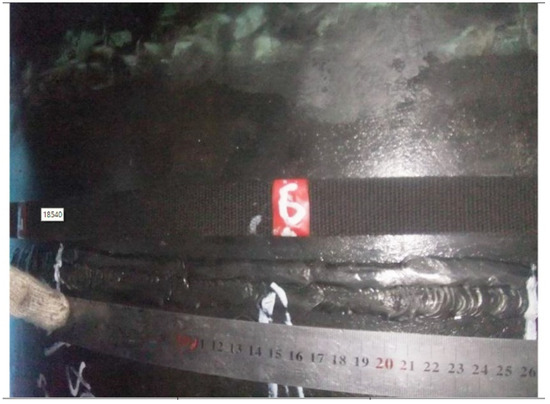 Thirty-two-inch crude oil pipeline was inspected by the UltraScan™ CCD inspection tool of PII Pipeline Solutions. The analysis team prepared the first five inspection sheets that were considered to contain the most significant indications found in the ILI data during the course of ILI data analysis and needed excavations to help improving analysis of the UltraScan™ CCD ILI data. The reported external defects were found to be in all weld repairs during the first five excavations, as shown in Table 6 and Figure 6, Figure 7, Figure 8, Figure 9, Figure 10, Figure 11 and Figure 12.