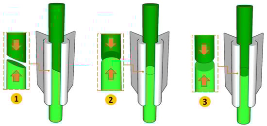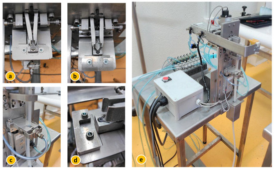 The grafting equipment on which the various splicing strategies were tested cuts each of the flexible plastic clips from a continuous reel, and then positions the grafting clip, thus ensuring the union between the rootstock and the scion (Figure 3). The process consists of two basic operations: (1) Preparation of the grafting clip by making a custom cut and (2) clamping the clip for optimal opening and placing it on the seedling to be grafted [47].