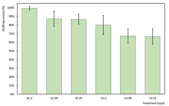 Grafting success for different test techniques. Success rate includes standard deviation, calculated from 6 replications.