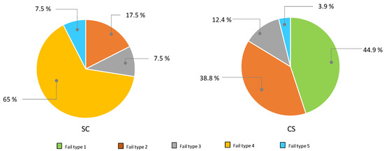 Approximating the seedlings until their free surfaces are in contact and then fitting the grafting clip guarantees greater success in the splice-grafting process (SC). This difference in success, around 20% higher, is possibly due to less mistreatment of the seedlings when these are inserted into the clip through their lateral opening, instead of being introduced through their upper and lower holes. Failures were classified and grouped into five categories, according to the origin that gave rise to the failed graft (Figure 8). From analyzing the failures recorded at the time of the grafting, we can see that, for the most part, for the strategy of junction order SC, most failures were due to pinches caused on the stems by the clip, despite being approximate with maximum opening. The total failure rate did not reach 10% for SC. However, for the strategy of junction order CS, these were due to frictional chafing and wounds occurring when the stems were inserted into the clip holes, or because of deformation or damage on the joined surfaces with the stem twisting on itself as it was inserted as a guide inside the clip. The total failure rate was close to 30% for CS.