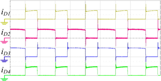 Current waveforms of rectifying diodes. (iD1, iD2, iD3, iD4: 1 A/div, Time: 10 μs /div).