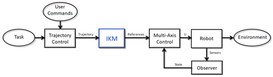 The IKM function is to calculate the control references required by the robot’s actuators, so the robotic system can reach a desired position or follow a predetermined path. This makes the IKM a fundamental part of the robot’s control system, as presented in Figure 1.