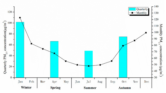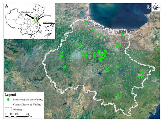 - Li, Y.; Dai, Z.; Liu, X. Analysis of Spatial-Temporal Characteristics of the PM2.5 Concentrations in Weifang City, China. Sustainability 2018, 10, 2960. [Google Scholar] [CrossRef]