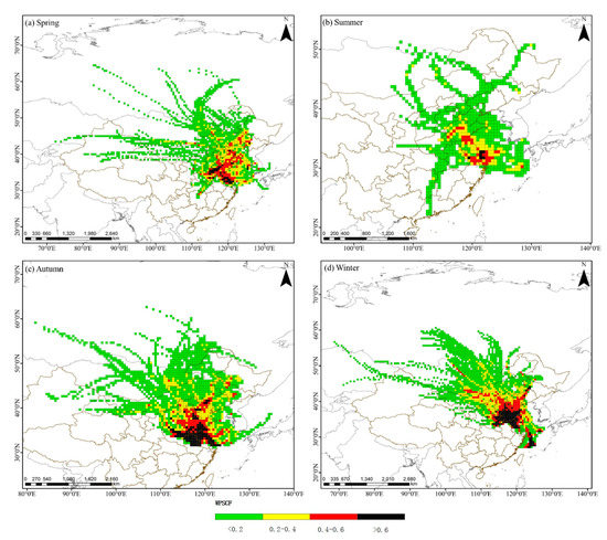 - Evaluation of the analysis results. The results demonstrate that the seasonal distributions of PM2.5 source areas obtained by two methods (PSCF and CWT) share generally similar characteristics, demonstrating the credibility and accuracy of the analysis results. Both methods can effectively reflect the potential source areas of pollution in the region. However, there is a limitation in validating the modeling results with the real transport values because emissions and depositions of air pollutants along the trajectories cannot be captured easily. Nevertheless, our results are able to locate the source direction and areas and identify source contributions to a certain extent. To support this point, we analyzed the notice issued by Shandong Provincial Environmental Protection Office, which indicates that the primary source of external dust transport from Inner Mongolia is the main reason that leads to the rapid increase in pollutants in Weifang City in April [45]. Thus, some references indicated that in northern China (such as Weifang), the main pollution sources come from anthropogenic emissions related to coal burning and their transportation [46]. These cases both support our findings regarding spring and winter. In addition, PSCF and CWT are appropriate tools that help identify source contributions to the concentration variations at the destination, assuming that other elements/factors remain the same, such as the period of the kite festival (in April every year). In the future, additional work that combines emission sources and external monitored PM2.5 concentration data is needed to improve the prediction of PM2.5 source regions and validate the analysis results quantitatively.