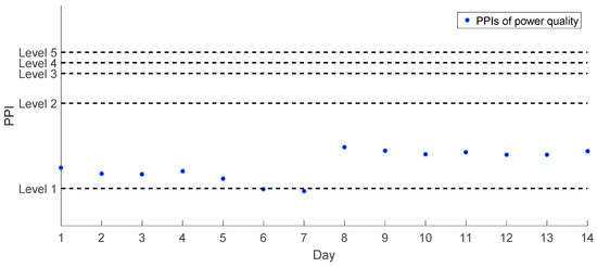 The PPI value of the daily power quality with the PPI value of the level upper boundary is compared in Figure 6.