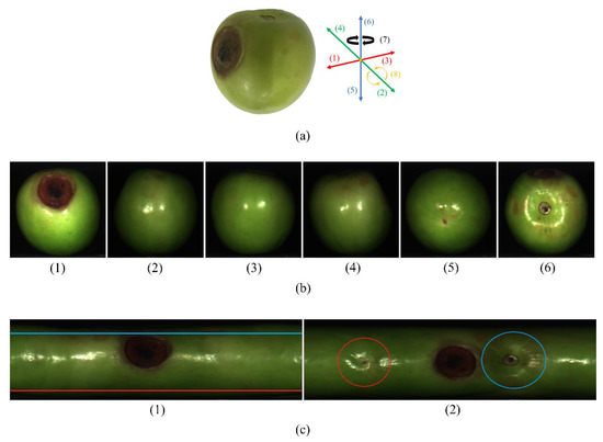 Appearance is one of the important attributes of fruits which affect their price and consumers’ preferences. Fruits which are unsuitable for sale or storage due to surface defects caused by mechanical injuries, insects, diseases, over-ripeness, under-ripeness, etc. should be sorted out during postharvest processing since the consumers normally prefer to buy fruits with no apparent defects. Furthermore, removing fruits with surface defects from the sound ones can reduce losses by preventing secondary contamination. Sorting out fruits with surface defects is usually carried out by manual operation, which is time-consuming, laborious, and subjective [1,2,3].