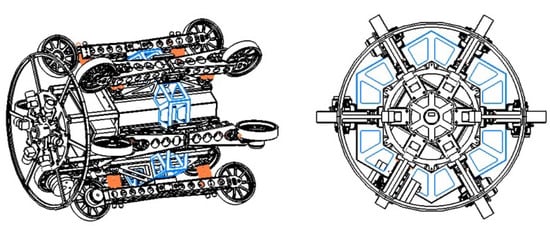 - Yukawa, T.; Suzuki, M.; Satoh, Y.; Okano, H. Design of magnetic wheels in pipe inspection robot. In Proceedings of the 2006 IEEE International Conference on Systems, Man and Cybernetics, Taipei, Taiwan, 8–11 October 2006; Volume 1, pp. 235–240. [Google Scholar]