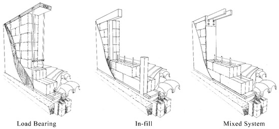From an operational point of view, the range of technical opportunities with straw building systems is quite wide. The essential characteristics of the construction systems can be summarized briefly by grouping them into three broad categories [3] (Figure 1):