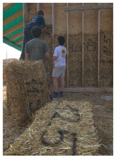 The main guidelines on in-fill systems were published by the French association Réseau Français de la Construction Paille—Les Compaillons in 2012 [5] and by the German Association Fachverband Strohballenbau Deutschland, which published the ground rules for straw buildings in 2014 [6]. These guidelines and technical standards provide useful information concerning the physical properties of straw and its interactions with the infill, wall, or roofing system, in a similar way to European Construction Product Regulation 305/11. The French rules also deal with construction details in order to increase the durability of the building.