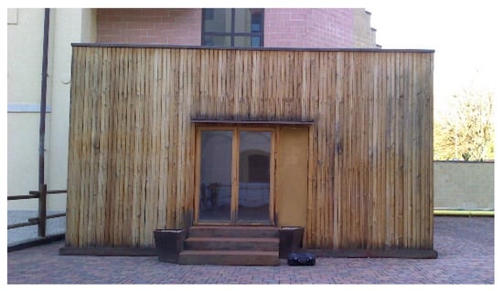 The first example, Casa Cembo in Saluggia (Vercelli), which was designed in 2010 and built in 2012, represents the architects’ attempt to combine the advantages of load-bearing buildings, such as reduced use of timber and wall homogeneity, with those of in-fill structures, namely structural reliability and architectural flexibility (Figure 5). The second house, which is located in Verrès (Aosta) and was designed and built in 2014 [11], is an experimental prototype of a pre-assembly technique that is particularly suitable for construction in mountain or countryside areas (Figure 6). This prototype was presented at the “Maison et Loisir” fair in Aosta (Italy) to publicize this type of construction, and to disseminate its environmental sustainability principles obtained through the use of straw as an insulating material, as well as its versatility as a modular system, the very rapid construction time, and the good resistance of the structure.