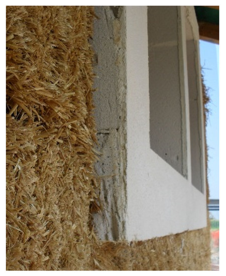Table 1 shows data taken from the literature [8,9,10] referring to the thermal characteristics of straw, straw bales, and straw walls. It can be observed that the thermal conductivity of straw is generally higher than a standard insulating material, such as expanded polystyrene (EPS) or rock wool, with a conductivity of about 0.035–0.04 W/m/K.