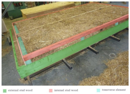 A wooden containment structure, featuring two stud walls connected by transverse elements that interrupt the continuity of the heat flow, was used to reduce thermal bridges (Figure 14).