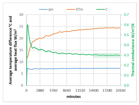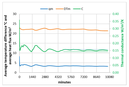 Casa Cembo: average heat flux, average surface temperature difference, and average thermal conductance C.