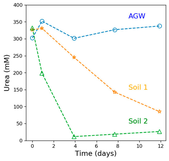 The ability to hydrolyze urea is widely distributed among indigenous bacteria in soils [15]. Hence, the biostimulation approach of MICP in soils is tangible. The main challenge with biostimulated MICP is inducing effective urea hydrolysis, which requires a sufficiently large ureolytic population. This challenge is even greater in nutrient-poor soils, where the initial bacterial abundance is low.