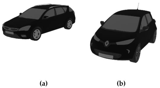 Visual models of the vehicle used in the experiment: (a) Kia Ceed SW; and (b) Renault Zoe ZE.