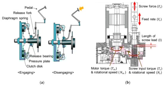 (a) Operating principle of a friction clutch; and (b) clutch actuator for automated clutch system.