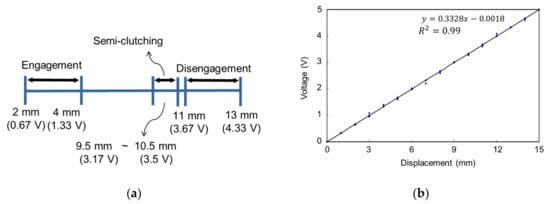 (a) Potentiometer values; and (b) calibration result according to position for clutch actuator.