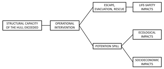 Figure 2 shows the chain of consequences considered in the risk framework presented here. In the event the structural capacity of a ship’s hull is exceeded, operational intervention measures will be employed to mitigate consequences. Should these measures be inadequate, EER may be required, which may have life-safety impacts, and there is the potential for a spill, which may have ecological and socio-economic impacts.