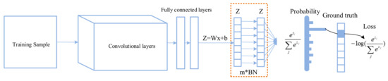 As shown in Figure 1, given a training sample, features of the input sample are extracted through a series of convolution and pooling layers. Then, some linear layers and Softmax classifier are used to determine the prediction probability that the input image belongs to each category. Finally, the loss at this epoch is obtained by calculating the cross-entropy loss, the network’s parameter is optimized by back propagation algorithm to minimize the loss of network output.