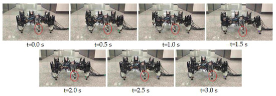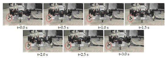 A set of snapshots of the walking experiment with leg 2 fault.
