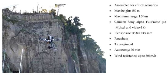 The photogrammetric survey was carried out for the case studies here presented by using the UAV ITALDRON 4HSEPRO (Figure 2).