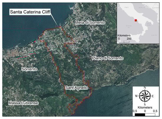 The rock cliff over the beach of Santa Caterina is located in the municipality of Sant’Agnello (Naples province, northern coast of the Sorrento Peninsula), in Campania region (Figure 5).