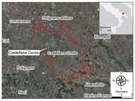 - Anelli, F. Guide to the excursion II. Bari-Alberobello-Selva di Fasano-Castellana Grotte-Bari. In Proceedings of the XVII Italian Congress Geography, Bari-Salerno, Italy, 23–29 April 1957; pp. 69–120. (In Italian). [Google Scholar]
