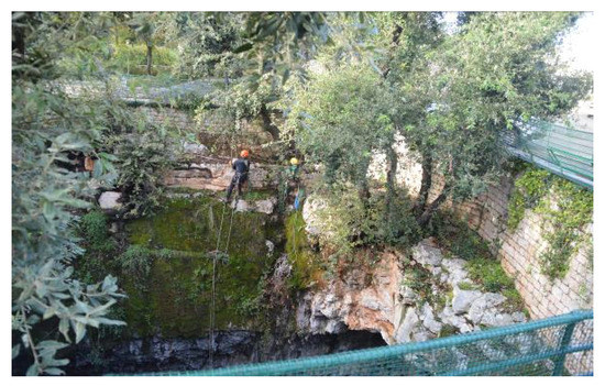 - Parise, M.; Proietto, G.; Savino, G.; Tartarelli, M. Ripresa delle attività esplorative alle Grotte di Castellana: Primi risultati e prospettive future. Grotte e Dintorni 2002, 4, 179–186. [Google Scholar]