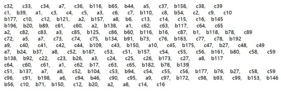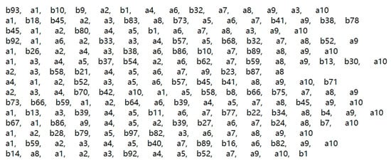 There are 50 types of sessions contained in the irrelevant sessions shown in Table 8;, they are ordinary patterns used to mislead the algorithm by containing a few actions appeared in the target pattern sessions at a specified percentage to simulate the real data environment. Intrusion patterns always share common actions with other sessions. The actions of the irrelevant sessions are named with the prefix “c”. These irrelevant intrusion patterns are also obfuscated through the steps described above. The generated data are shown in Figure 9.