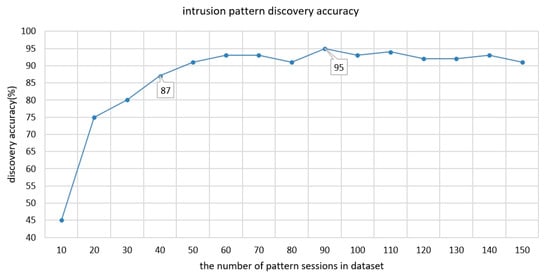 The experimental results are shown in Figure 12. If an intrusion pattern appears above 50 times in the dataset with the three types of data defects, the discovery accuracy can be 91% and remains stable.