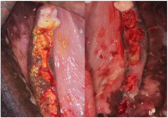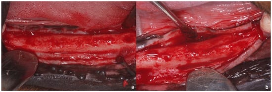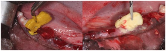 - Salomó-Coll, O.; de Maté-Sánchez, J.E.; Ramírez-Fernandez, M.P.; Hernández-Alfaro, F.; Gargallo-Albiol, J.; Calvo-Guirado, J.L. Osseoinductive elements around immediate implants for better osteointegration: A pilot study in foxhound dogs. Clin. Oral Implant. Res. 2018, 29, 1061–1069. [Google Scholar] [CrossRef] [PubMed]