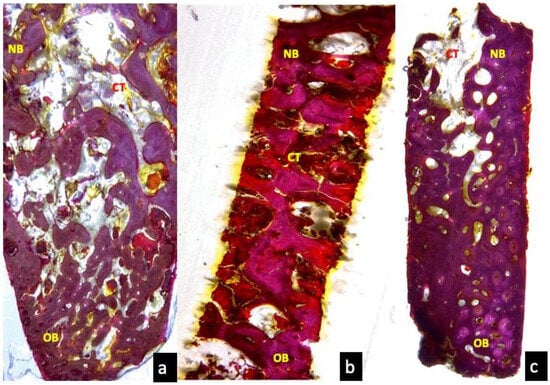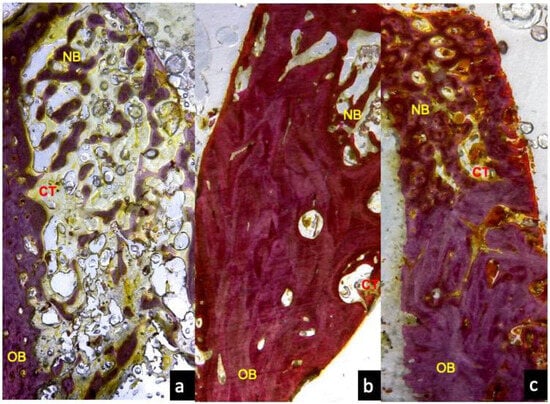 - Guskuma, M.H.; Hochuli-Vieira, E.; Pereira, F.P.; Rangel-Garcia Junior, I.; Okamoto, R.; Okamoto, T.; Magro-Filho, O. Bone regeneration in surgically created defects filled with autogenous bone: An epifluorescence microscopy analysis in rats. J. Appl. Oral Sci. 2010, 18, 346–353. [Google Scholar] [CrossRef] [PubMed]