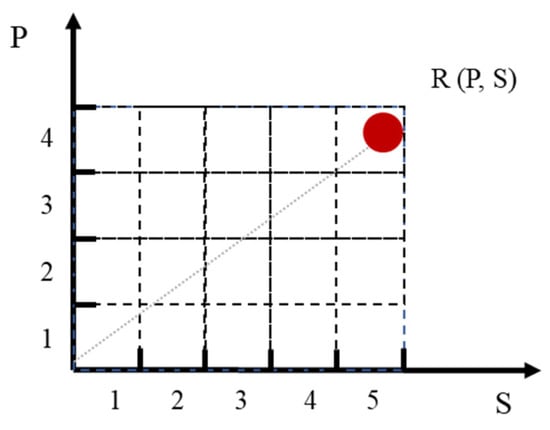 Therefore, risk value in Table 1 mapping to the two-dimensional space, then Euclidean distance between the risk assessment point as shown in Figure 2 and the space origin is introduced to calculate risk evaluation values as shown in Equation (12). a, b is the preference correction factors.