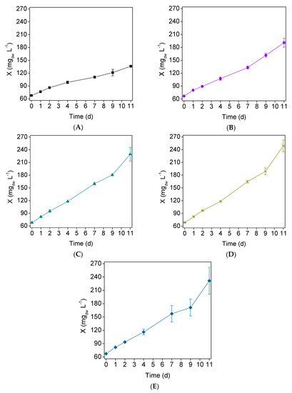2.3. Microalgal Growth Monitoring and Kinetic Growth Parameters