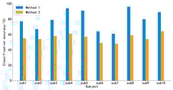 Classification accuracy comparison of Method 1 and Method 2.
