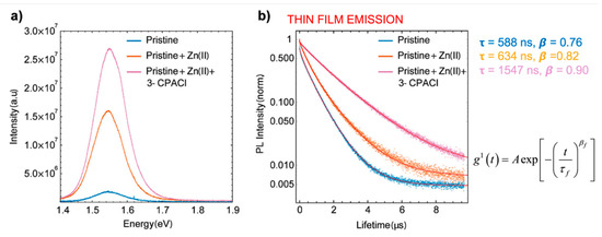 Similar effects have been observed [41] upon doping with Zn(II) in combination with Cl−, the latter originating from the alkyl-ammonium additive (see Figure 11).