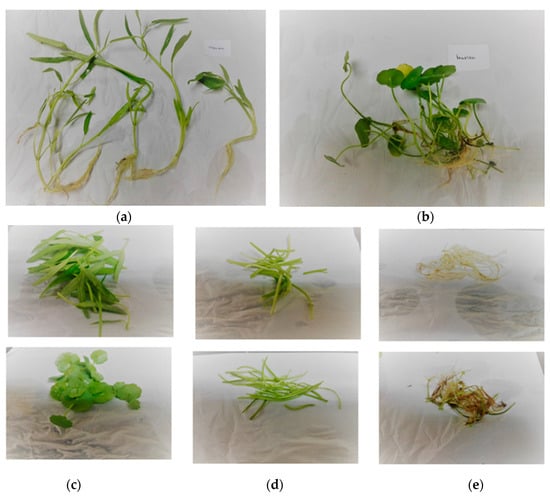 - Hanafiah, M.M.; Mohamad, N.H.S.M.; Aziz, N.I.H.A. Salvinia molesta dan Pistia stratiotes sebagai agen fitoremediasi dalam rawatan air sisa kumbahan. Sains Malays. 2018, 47, 1625–1634. [Google Scholar] [CrossRef]