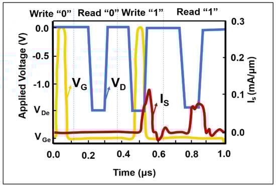 Illustrated waveform of a capacitor-less DRAM’s operation. The DRAM is composed of a Z2-FET with VBG = 2 V [43,44].