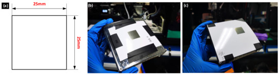 The commercial conductive nanosilver ink CON-INK550 developed by BroadTeko company was used in the experiment. This ink had a silver content of 40%, silver powder average diameter in the range of 45–55 nm, a viscosity of = 8 cP, a sheet resistance of , an adhesion of level 0, a hardness of 2 h, surface tension of = , and a density of .
