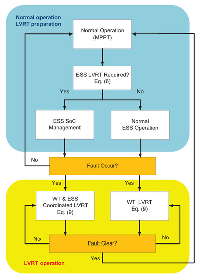 - From the proposed method, the stability of the LVRT operation can be improved in any wind speed conditions and it can prevent failures in both a WT and an ESS.