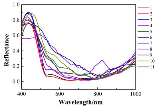 Spectra of the Class 6 in active HSI data. A total of 11 spectra are randomly selected.
