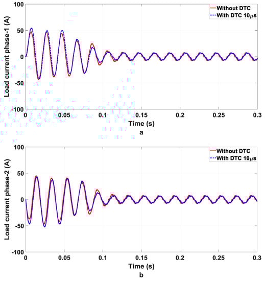 Phase angle distortion is also a downside of dead time. However, an efficient DTC strategy can handle this drawback to a certain degree. The proposed DTC model can achieve significant improvements in this domain as well. Figure 11b for dead time 10 shows the phase angles distortion pre and posts using the DTC technique respectively. It is vividly evident from these figures that the phase angle distortion has been significantly reduced through the application of the proposed DTC technique.