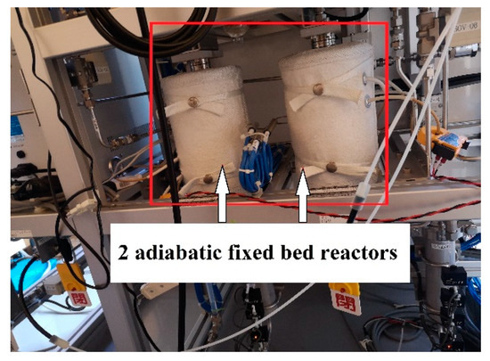 View of the two adiabatic fixed-bed reactors used for the methanation system.