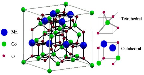 Normal spinel structure of Co2MnO4. Component structures, namely, tetrahedral and octahedral, are shown on the right-hand side [22]. Copyright 2010, AIP Publishing.