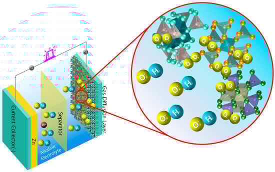 The dominance of fossil fuels in energy production has become a massive problem in modern societies because of the resultant global warming and climate change. Because energy obtained from renewable sources faces challenges such as season, climate, and location dependency, the ability to store this energy for uninterrupted use is indispensable if demand is to be met. These circumstances introduce the role of electrochemical energy technology in converting and storing sustainable energy [1,2,3,4,5]. In the quest to store energy from renewable sources, metal–air batteries have been gaining attention because of their safety; they also use abundantly present oxygen as the cathode source, and they have 2–10 times the higher theoretical energy density than commercial lithium-ion batteries [6,7,8,9].