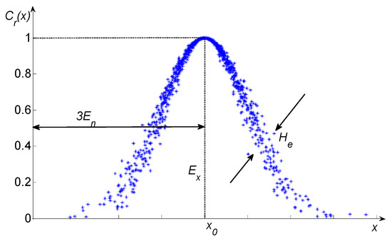 Expectation , entropy , and super-entropy are the three digital characteristics describing fuzzy sets, as shown in Figure 3. is the membership degree. The three characteristics express the quantity feature of a qualitative concept. is the center value of the concept in the theory field, and it is the most representative of the qualitative concept. is the uncertainty measurement of the qualitative concept, which is determined by both the randomness and fuzziness of the concept. is the uncertainty measurement of , which is determined by both the randomness and fuzziness of . Therefore, the fuzziness and randomness are completely combined by the three characteristics of the uncertainty transformation models, which constitute the mapping between quality and quantity as the foundation of knowledge expression.