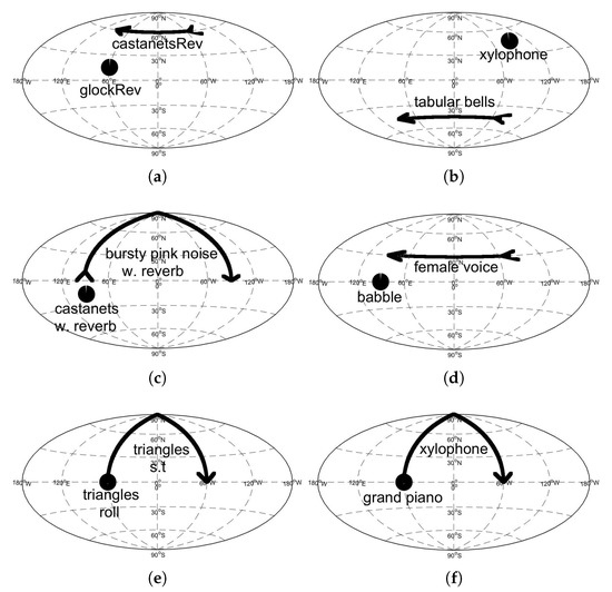 - Bertet, S.; Daniel, J.; Parizet, E. Investigation on Localisation Accuracy for First and Higher Order Ambisonics Reproduced Sound Sources. Acta Acust. United Acust. 2013, 99, 642–657. [Google Scholar] [CrossRef]
