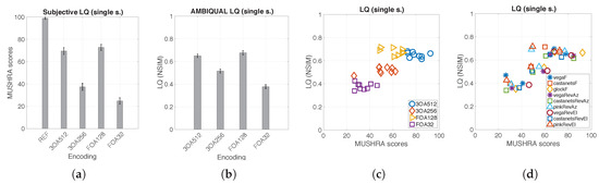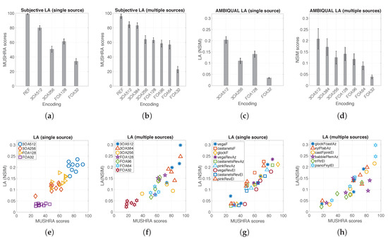 - Narbutt, M.; Skoglund, J.; Allen, A.; Chenin, M.; Hines, A. Ambiqual—A full reference objective quality metric for ambisonic spatial audio. In Proceedings of the Tenth International Conference on Quality of Multimedia Experience (QoMEX), Cagliari, Italy, 29 May–1 June 2018; IEEE: Piscataway, NJ, USA, 2018; pp. 1–6. [Google Scholar]