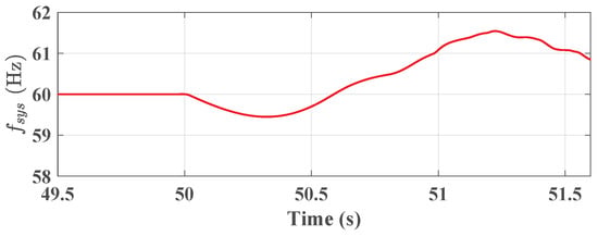 Frequency stability represents the power system’s ability to maintain the system frequency after a severe disturbance, which causes generation-demand unbalance. Frequency instability may occur in the form of frequency fluctuations, which may trigger the protection devices []. Severe contingencies cause large digressions in the system frequency. Controls, protections, and processes will respond to these severe excursions to maintain the system stability. The system stability depends on the appropriate coordination of controls and protection systems, sufficient equipment responses, and adequate primary and secondary reserves. System instability may occur due to lack of adequate reserves, inappropriate under-frequency load-shedding, overspeed controls of turbines, and so on.